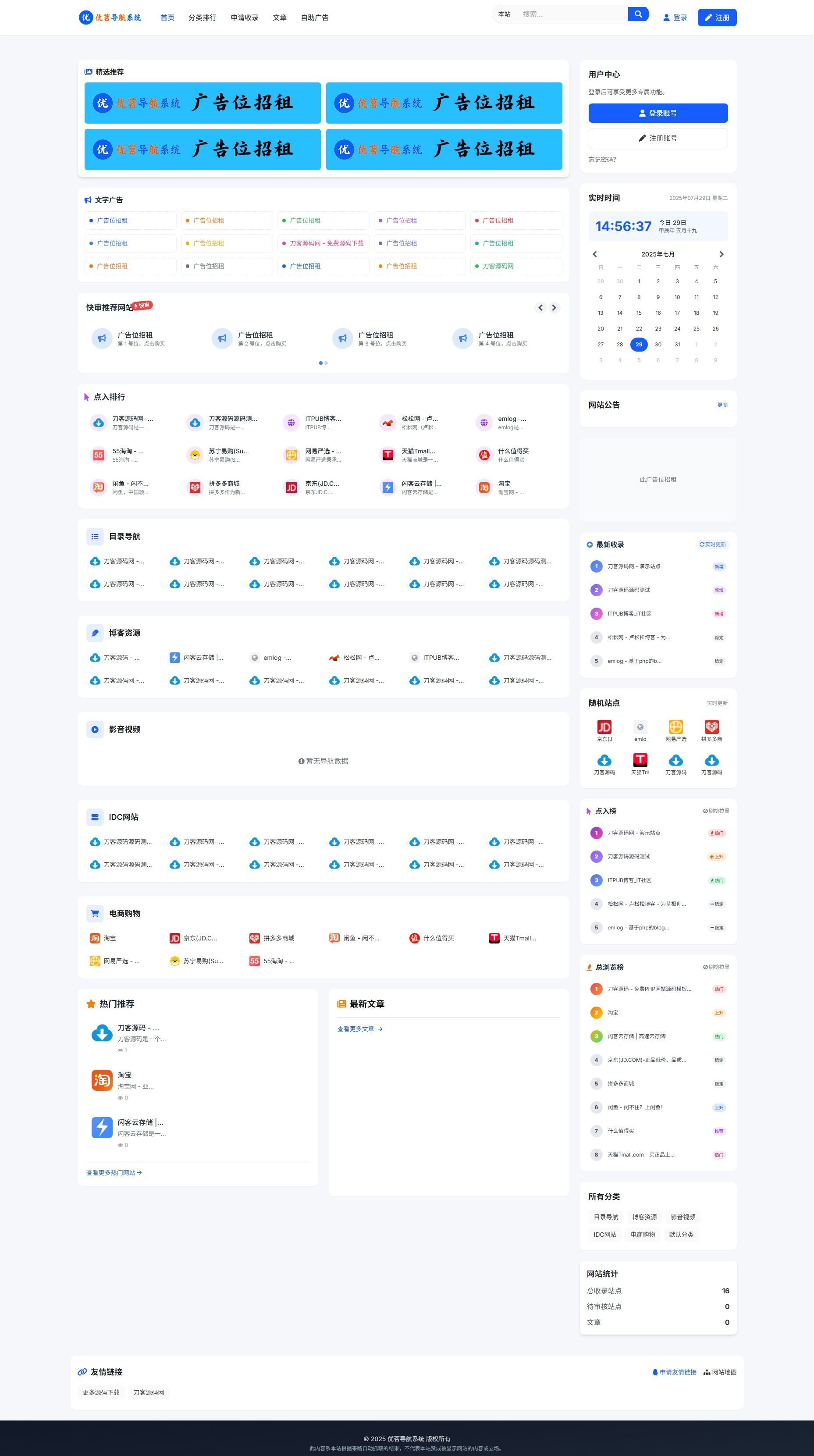 最新优茗导航系统源码/全开源版本/精美UI/带后台/附教程千城资源网4个月前更新关注私信9159最新优茗导航系统源码/全开源版本/精美UI/带后台/附教程此内容为付费资源,请付费后查看R币9.9千城资源网会员免费千城资源网永久会员免费立即购买建议登陆后购买,可保存购买订单~付费资源 ! 也想出现在这里? 联系我们吧 广告 简介: 最新优茗导航系统源码 全开源版本 精美UI 带后台 附教程 亲测可用 站长搭建简单测试了,正常可用,其他自己下载研究吧 前端截图: 后台截图: © 版权声明 版权声明 1 本站名称: 千城资源网 2 本站网址:https://www.stucoding.com 3 本网站的文章部分内容可能来源于网络,仅供大家学习与参考,如有侵权,请联系客服QQ:2456761 微信:luck2456761 进行删除处理。 4 本站一切资源不代表本站立场,并不代表本站赞同其观点和对其真实性负责。 5 本站一律禁止以任何方式发布或转载任何违法的相关信息,访客发现请向站长举报。 6 本站附件资源、教程等内容如因时效原因失效或不可用,请评论区留言或联系站长及时更新。 THE END源码 喜欢就支持一下吧点赞59 分享QQ空间微博QQ好友海报分享复制链接收藏