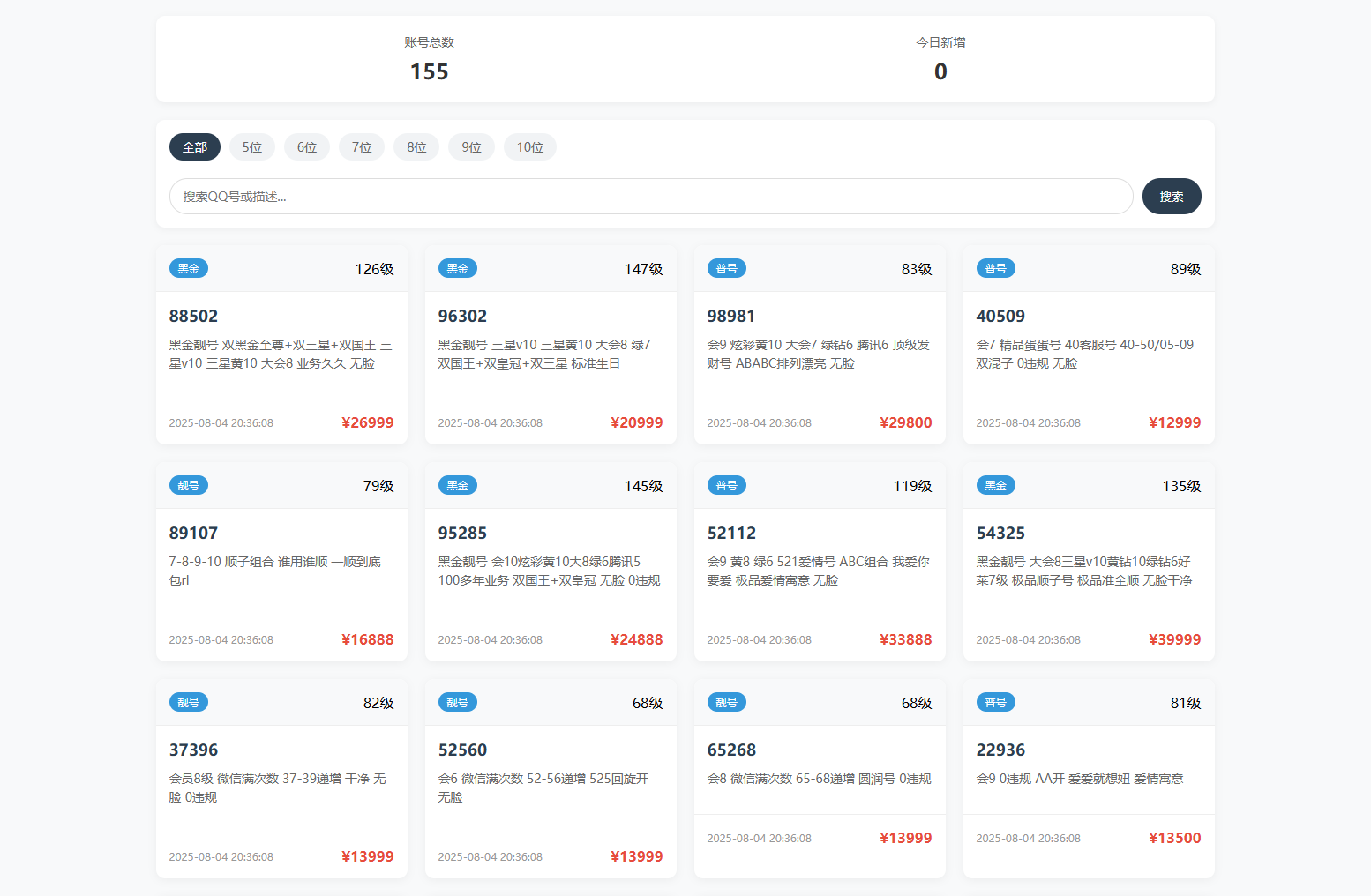 扣扣号码展示网站源码_号码售卖展示系统源码 全开源 带后台千城资源网3个月前更新关注私信1552扣扣号码展示网站源码_号码售卖展示系统源码 全开源 带后台此内容为付费资源,请付费后查看R币9.9千城资源网会员免费千城资源网永久会员免费立即购买建议登陆后购买,可保存购买订单~付费资源 ! 也想出现在这里? 联系我们吧 广告 简介: 扣扣号码展示网站源码_号码售卖展示系统源码 全开源 带后台 多套首页模板 附教程 适用于企鹅号码展示,也可用于其他靓号的展示用途,如车牌号之类的。感兴趣的自行下载吧 图片: © 版权声明 版权声明 1 本站名称: 千城资源网 2 本站网址:https://www.stucoding.com 3 本网站的文章部分内容可能来源于网络,仅供大家学习与参考,如有侵权,请联系客服QQ:2456761 微信:luck2456761 进行删除处理。 4 本站一切资源不代表本站立场,并不代表本站赞同其观点和对其真实性负责。 5 本站一律禁止以任何方式发布或转载任何违法的相关信息,访客发现请向站长举报。 6 本站附件资源、教程等内容如因时效原因失效或不可用,请评论区留言或联系站长及时更新。 THE END源码 喜欢就支持一下吧点赞52 分享QQ空间微博QQ好友海报分享复制链接收藏